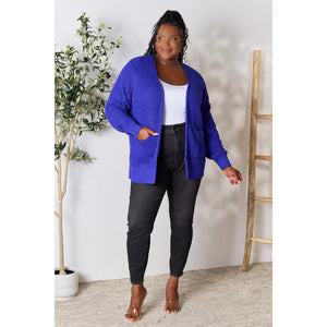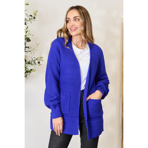 Zenana Full Size Waffle-Knit Open Front Cardigan