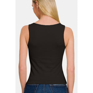 The Square Neck Cropped Tank top features a stylish square neckline and a cropped silhouette, offering a trendy and versatile piece for your wardrobe. Perfect for pairing with high-waisted bottoms or layering under jackets or cardigans, this tank top provides a flattering and contemporary look. Whether dressed up or down, this cropped tank is a versatile and must-have piece for creating stylish outfits. Add a modern edge to your wardrobe with the Square Neck Cropped Tank top.