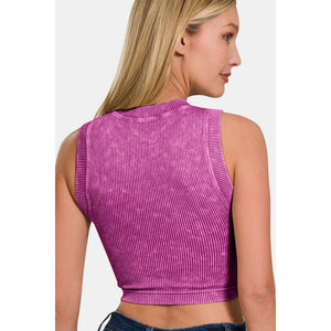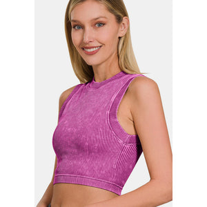 Zenana Washed Ribbed Seamless Crop Tank with Bra Pad