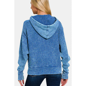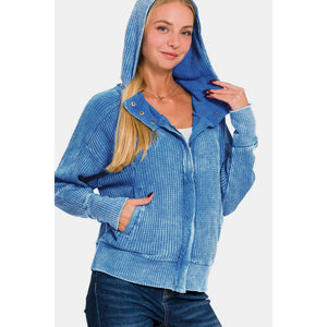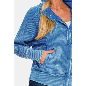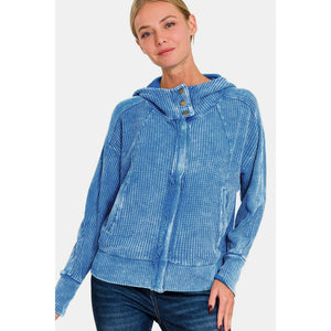 Zenana Washed Zip Up Hooded Jacket
