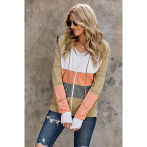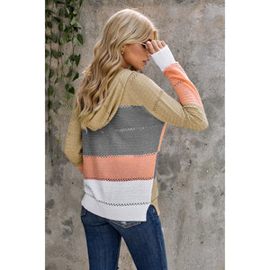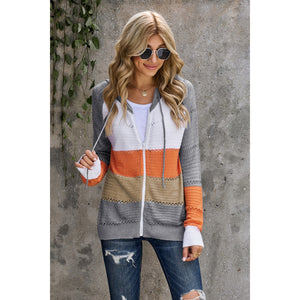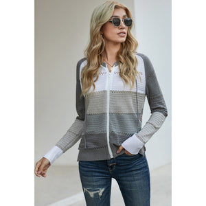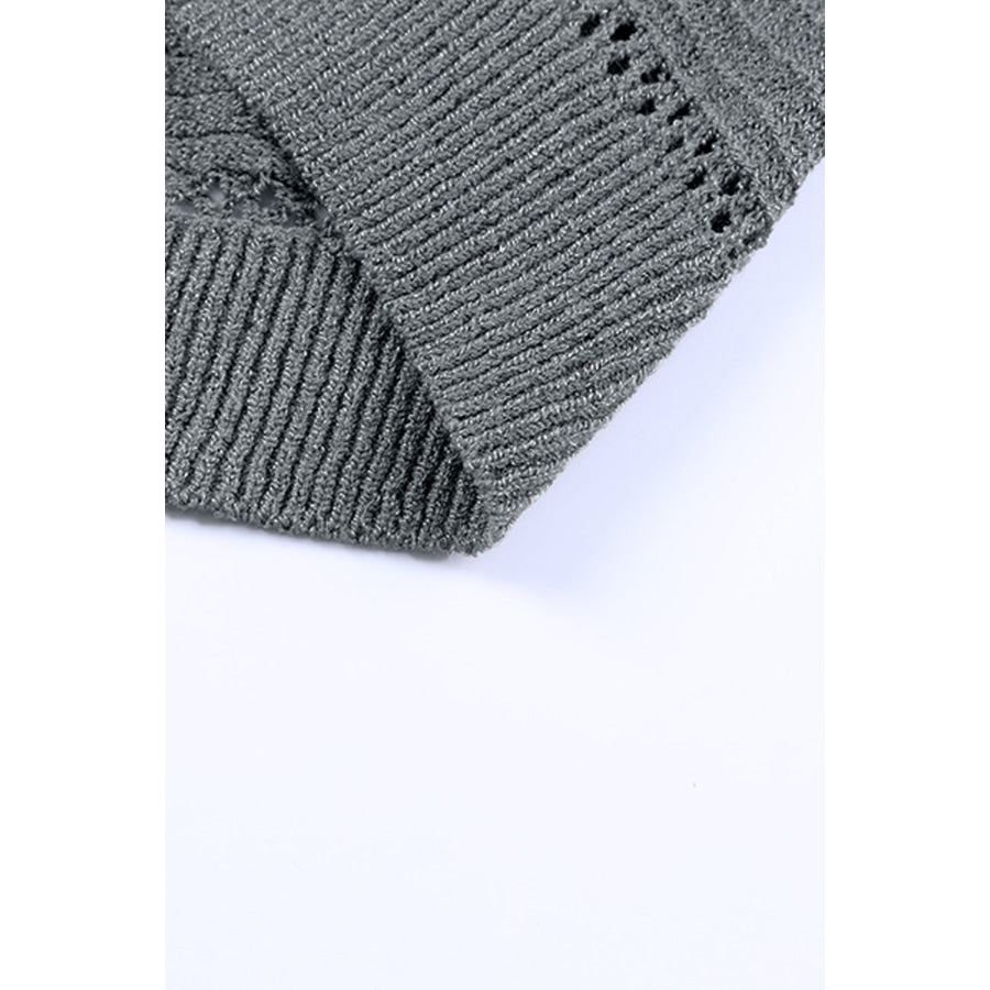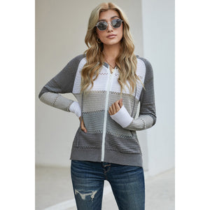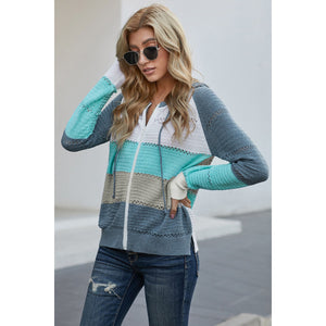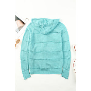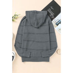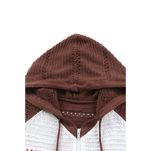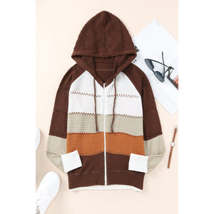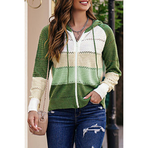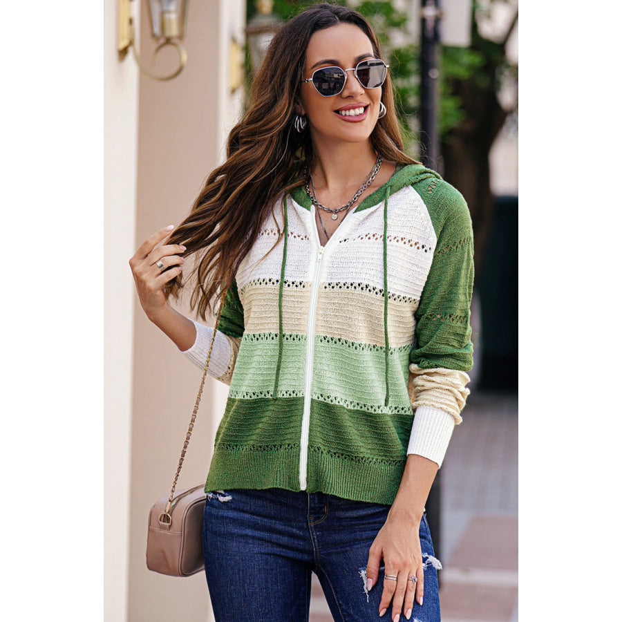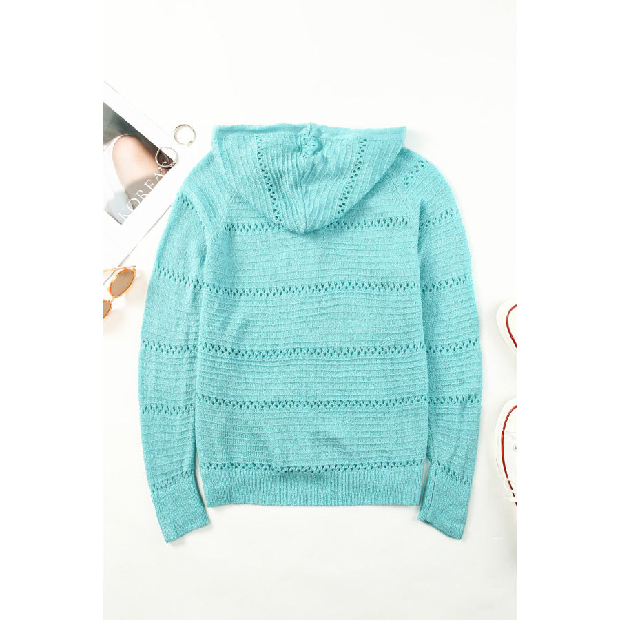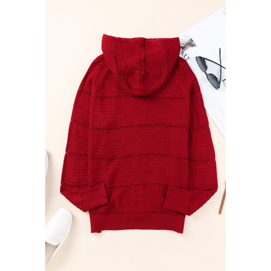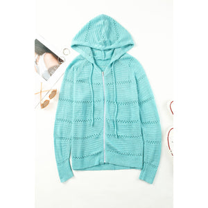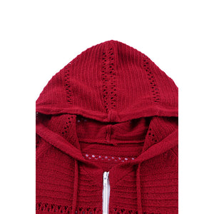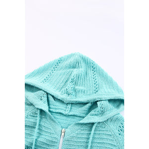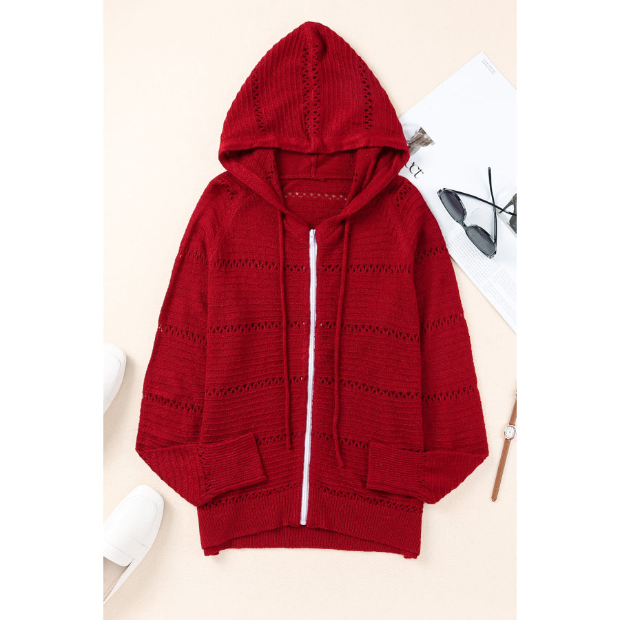 Zip-Up Raglan Sleeve Openwork Hooded Cardigan