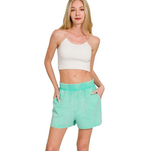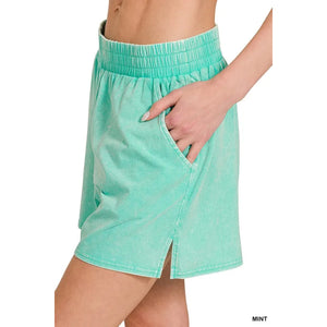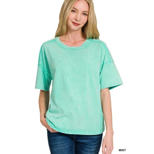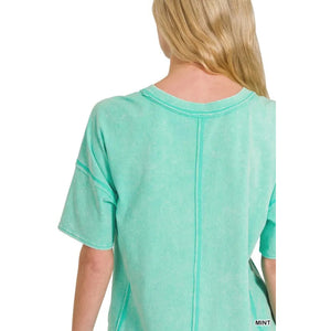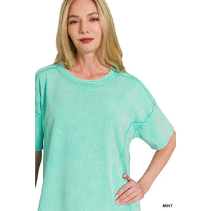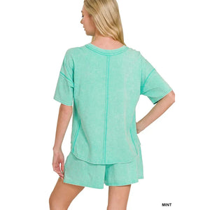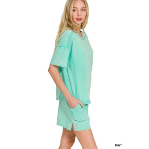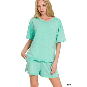 Zenana Acid Washed Short Sleeve Tee & Shorts Set