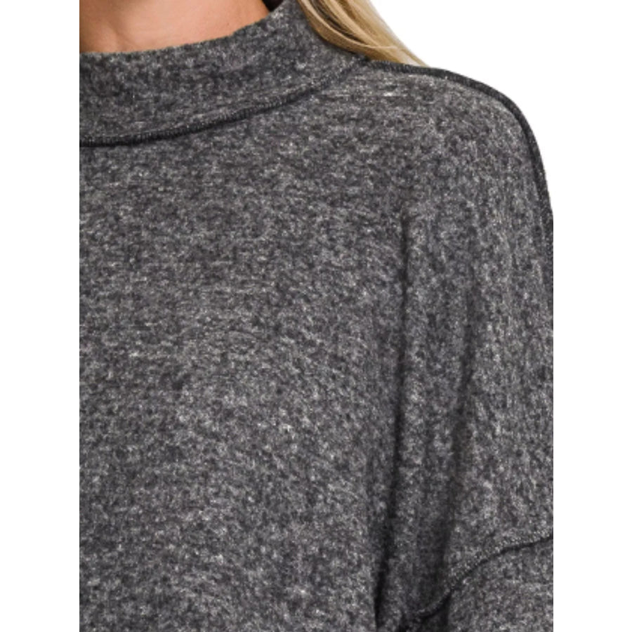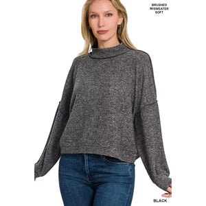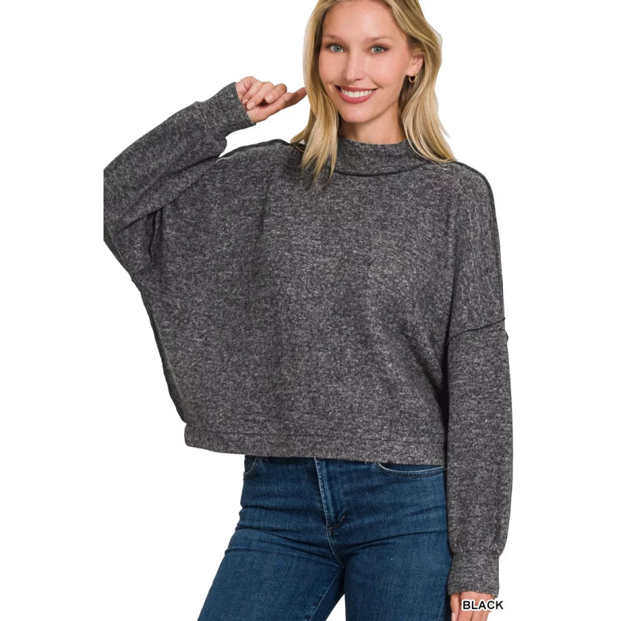 The brushed melange Hacci cropped sweater is a trendy and cozy addition to your wardrobe. With its soft and textured Hacci fabric, it provides a comfortable and luxurious feel. The cropped length offers a modern and stylish look that can be easily paired with high-waisted bottoms. Perfect for creating chic and casual outfits, this sweater is versatile for various occasions. Elevate your style with this on-trend cropped sweater.