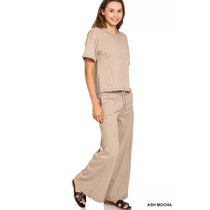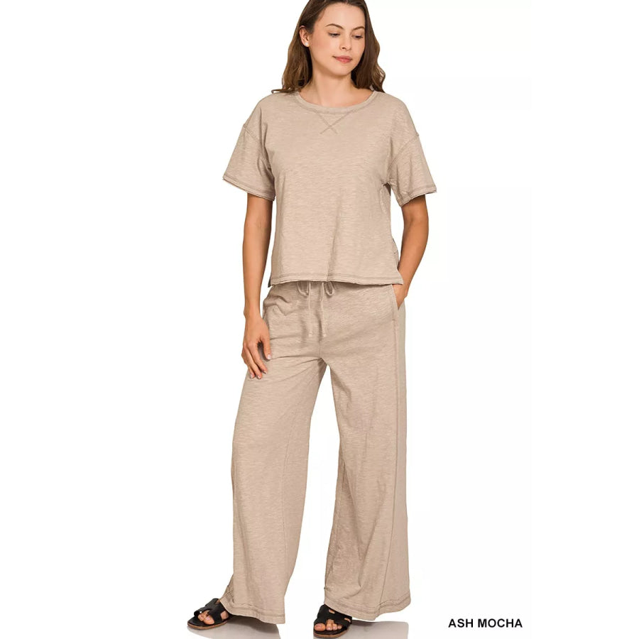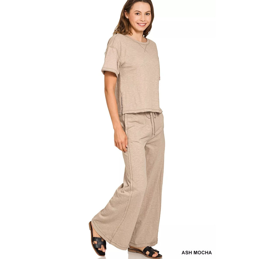 Zenana Cotton Slub Short Sleeve Tee and Pants Set