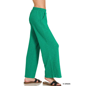 These cotton slub wide leg pants are a comfortable and stylish addition to your wardrobe. Made from breathable cotton slub fabric, they offer a relaxed and casual feel. The wide leg design provides a flattering and on-trend silhouette. Perfect for both lounging at home or running errands, these pants offer versatility and comfort. Elevate your everyday look with these chic and easy-to-style wide leg pants.