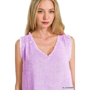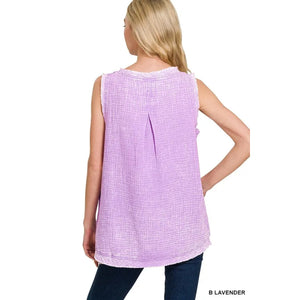 Zenana Double Gauze Raw Edge Acid Washed Tank