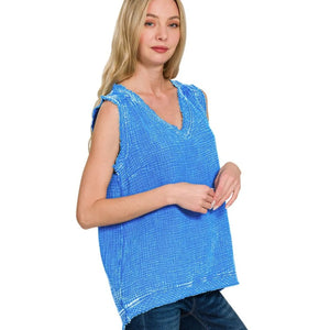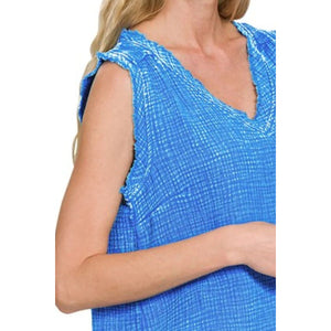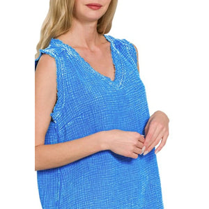 Zenana Double Gauze Raw Edge Acid Washed Tank