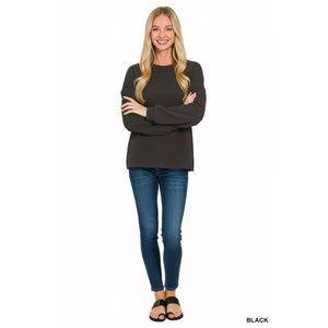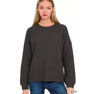 This double knit round neck long sleeve top is a versatile and stylish addition to your wardrobe. The double knit fabric offers warmth and a sleek silhouette, making it perfect for layering or wearing on its own. With a round neck design, this top provides a classic and timeless look that can be easily paired with various bottoms. The long sleeves add extra coverage and comfort for cooler days, while the top's classic silhouette ensures a flattering fit for any body type. Whether dressed up or down, this top is a practical and chic choice for any occasion.