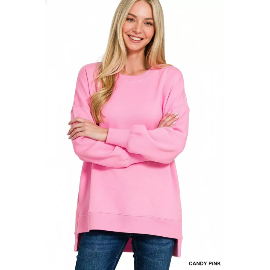 Zenana Fleece Hi-low Boyfriend Sweatshirts with Pockets