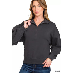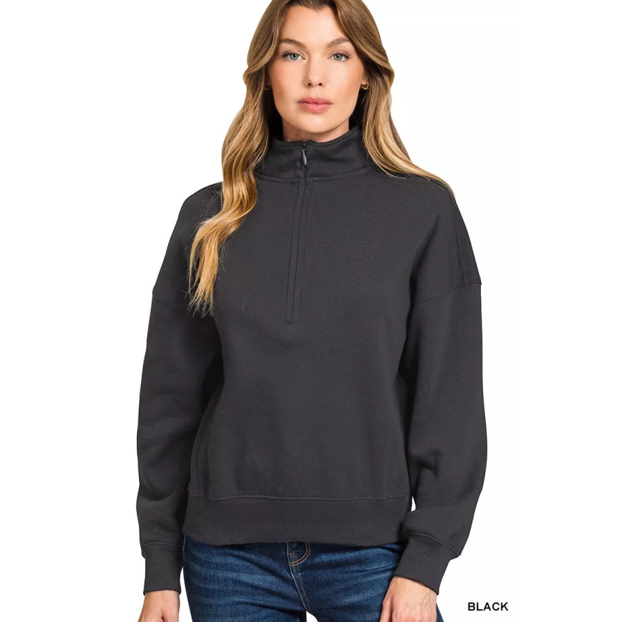 Zenana Fleece High Neck Half Zip Sweatshirt