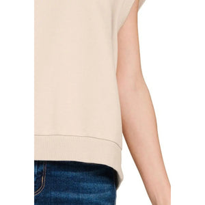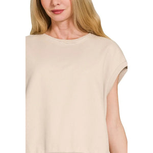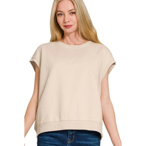 Zenana French Terry Round Neck Cap Sleeve T-Shirt