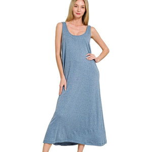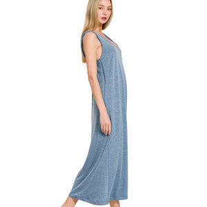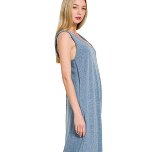 Zenana French Terry Twisted Strap Midi Dress