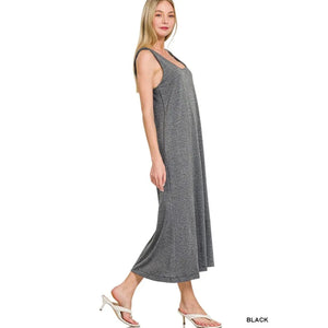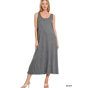 Zenana French Terry Twisted Strap Midi Dress