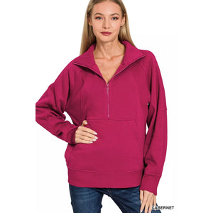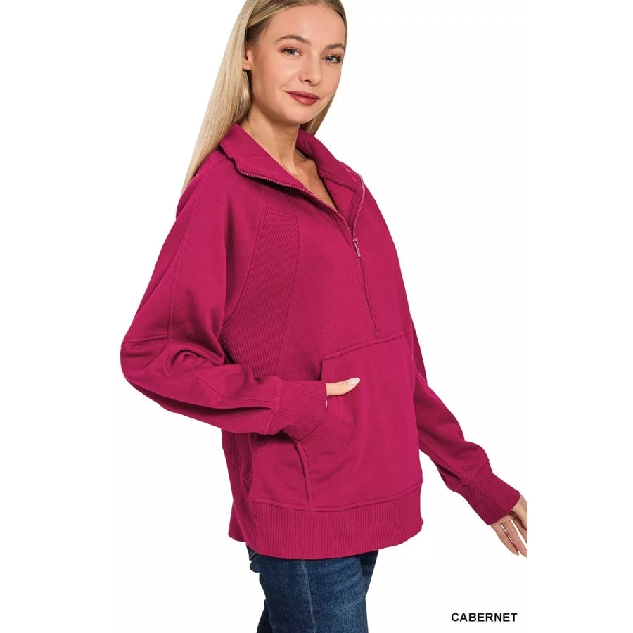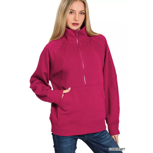 Zenana Half Zip Fleece Sweatshirt with kangaroo Pocket