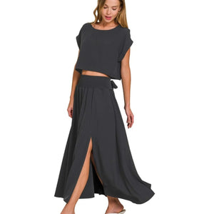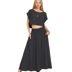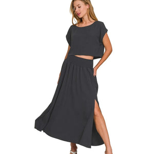 Zenana Heavy Woven Span Crop Tee & Skirt Set
