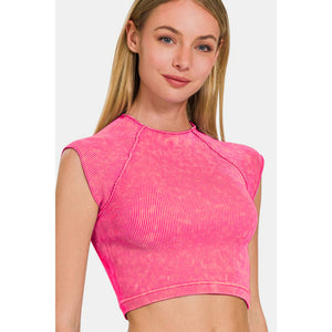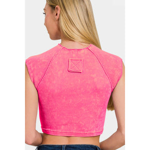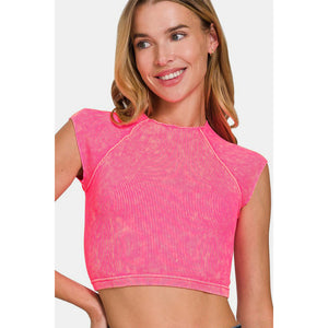 Zenana Ribbed Round Neck Cropped Top