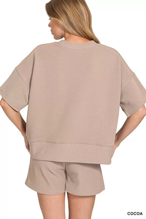 Zenana Ribbed Round Neck Waist Banded Tee & Shorts Set