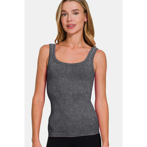 The Ribbed Scoop Neck Tank is a versatile and staple piece for any wardrobe. Its classic scoop neck design is flattering and easy to layer with other pieces. The ribbed texture adds a touch of dimension and interest to the basic tank top, making it a stylish option for both casual and dressy outfits. This tank is a must-have for its comfort, simplicity, and ability to be dressed up or down for any occasion.