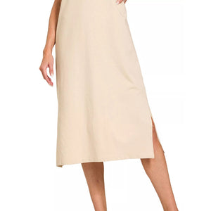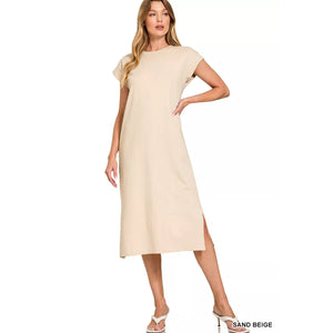 This round neck side slit midi dress is a timeless and elegant choice for any occasion. The classic round neckline offers a versatile and flattering look. Featuring side slits for added movement and a touch of modernity, this dress combines style with comfort. With a midi length, it provides a sophisticated and chic silhouette. Elevate your wardrobe with this versatile and effortlessly stylish midi dress.