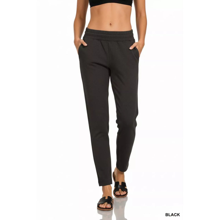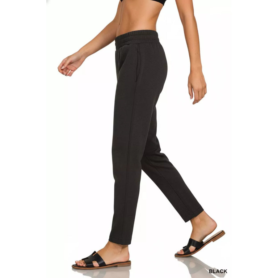 These Scuba Capri Sweatpants with Pocket are a must-have for your active wardrobe. The scuba material provides a flattering and comfortable fit. The capri length is perfect for warmer days or workouts. The convenient pocket adds functionality for storing small items. Stay stylish and comfortable in these versatile sweatpants.