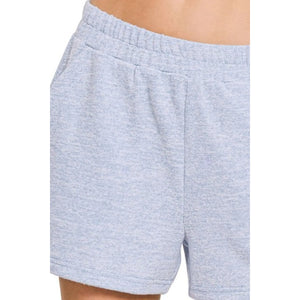 Zenana Soft Melange Hacci Elastic Waist Band Shorts