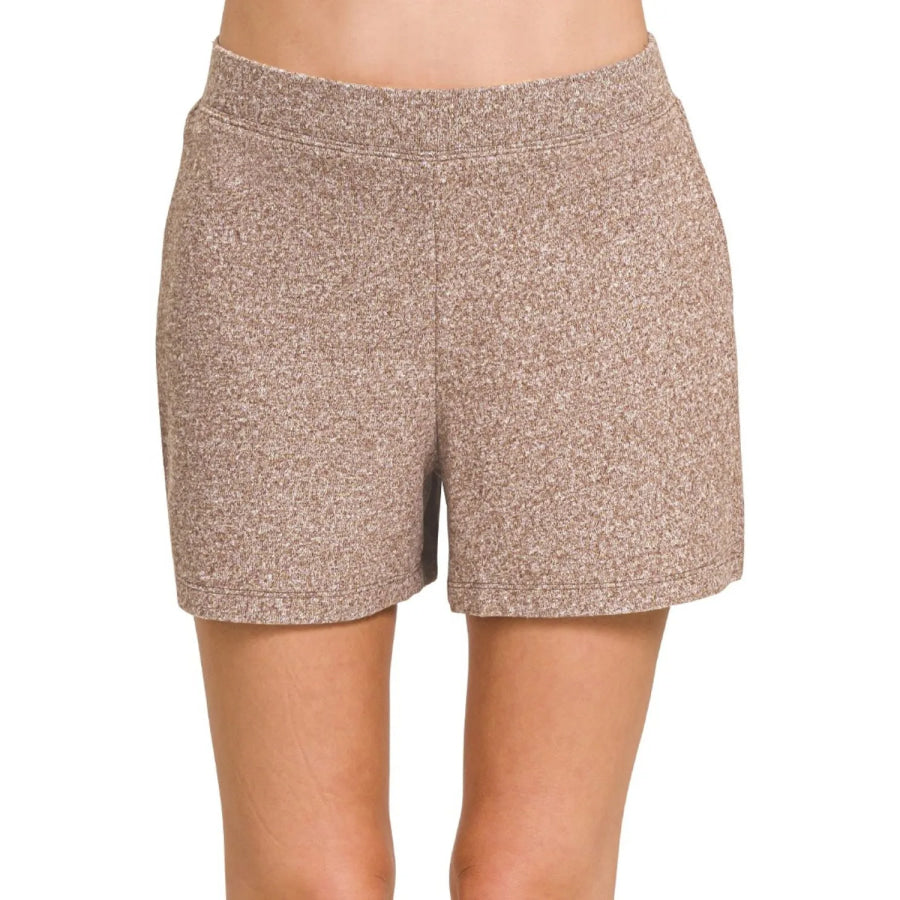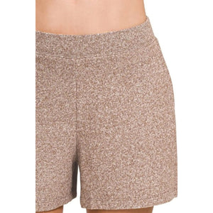 Zenana Soft Melange Hacci Elastic Waisted Shorts