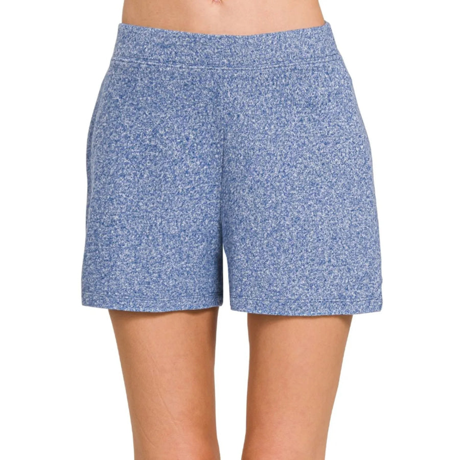 Zenana Soft Melange Hacci Elastic Waisted Shorts