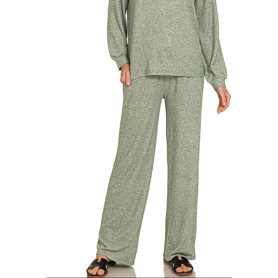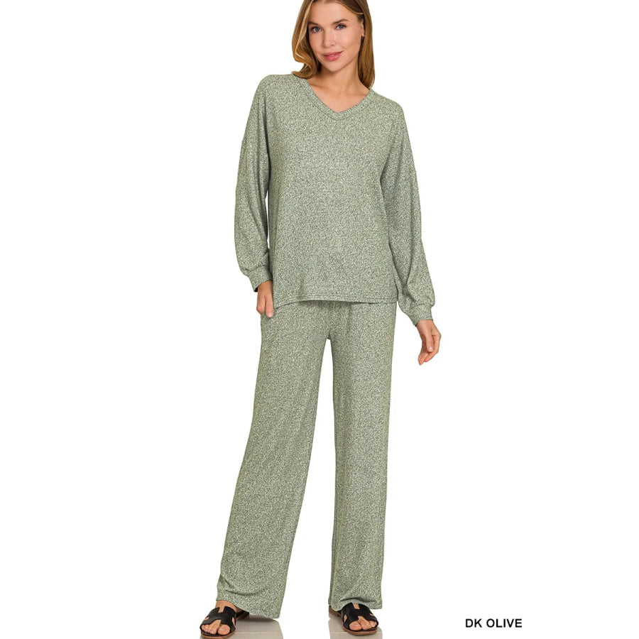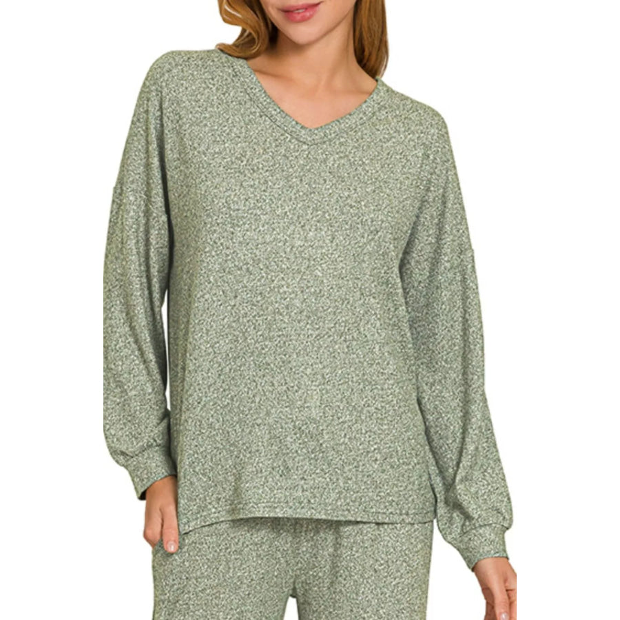 Zenana Soft Melange Long Sleeve Tee & Pants Set