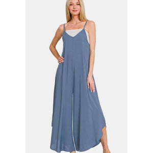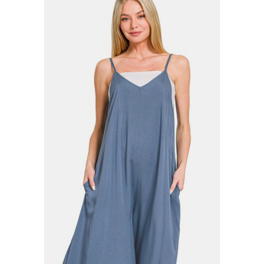 Zenana Spaghetti Strap Wide Leg Overalls with Pockets