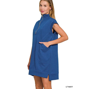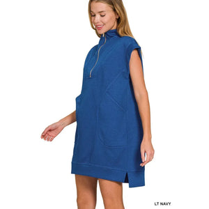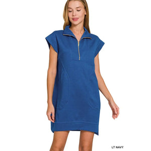 Zenana Textured Knit Jacquard Quarter Zipper Mini Dress