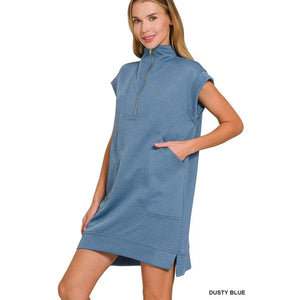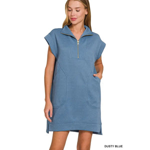 Zenana Textured Knit Jacquard Quarter Zipper Mini Dress