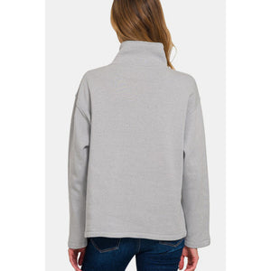 Zenana Turtleneck Half Snap Fleece Sweatshirt