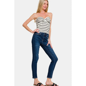 Zenana Twisted Sweetheart Neck Striped Tube Top