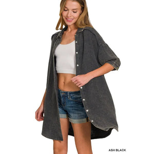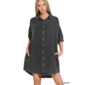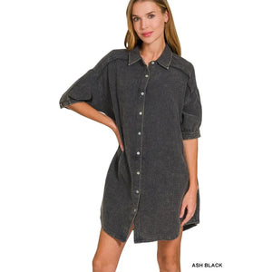 Zenana Washed Double Gauze Button Down Shirt Dress