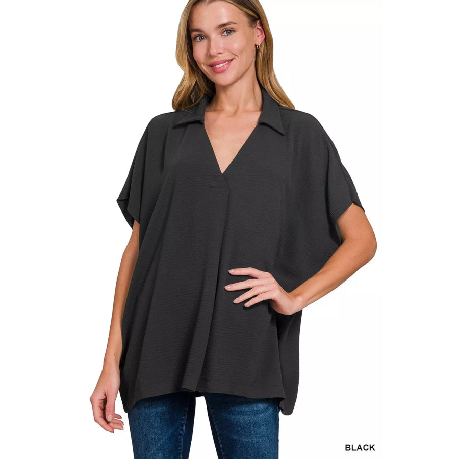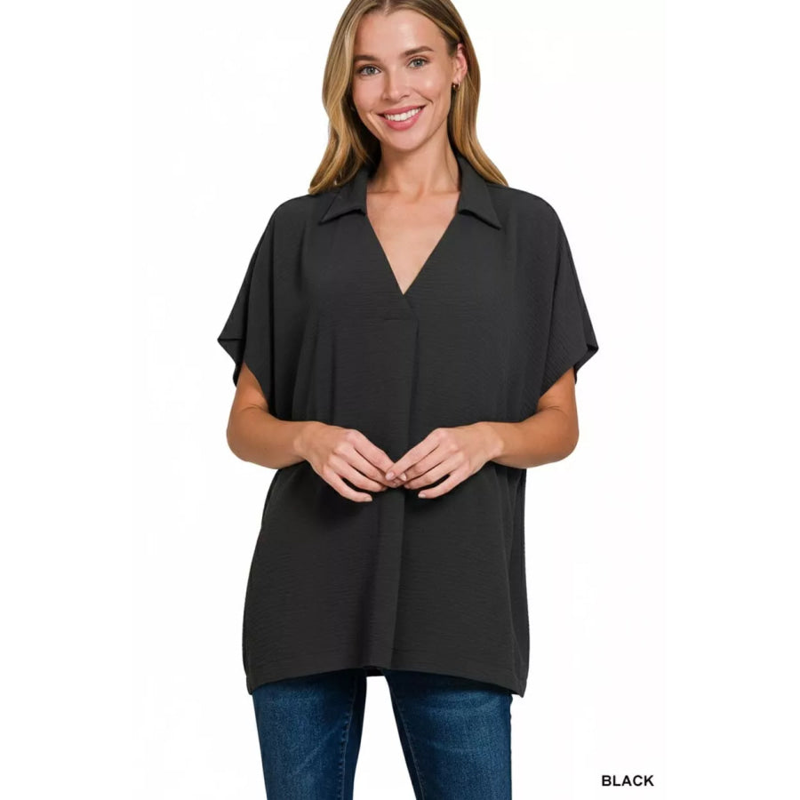 The Woven Airflow Collared Short Sleeve Top is a versatile and breathable addition to your wardrobe. With a collared neckline, it exudes a polished and chic look suitable for a variety of occasions. The short sleeves offer a casual and comfortable fit, perfect for warmer weather. Made of airflow fabric, this top provides breathability and comfort throughout the day. Elevate your outfit with this stylish and easy-to-wear woven top.
