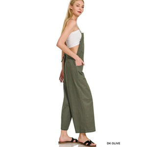 Woven spaghetti strap overalls are a stylish and versatile wardrobe piece that offers a playful and casual look. The spaghetti straps add a feminine and summery touch to the classic overall silhouette. These overalls are typically made from a light and breathable woven fabric, making them perfect for warm weather. The adjustable spaghetti straps allow for a customized fit, and the overall design provides a relaxed and effortless vibe. Woven spaghetti strap overalls can be styled with a variety of tops underneath, such as a t-shirt, tank top, or crop top, and can be paired with sandals or sneakers for a cute and laid-back outfit. They are a fun and trendy choice for those looking to add a touch of charm to their wardrobe.