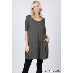 NEW! Half Sleeve Drop Shoulder Boxy Top with Pockets