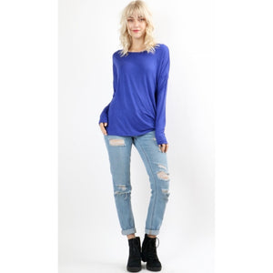 Solid Long Sleeve Drop Shoulder Rayon Top