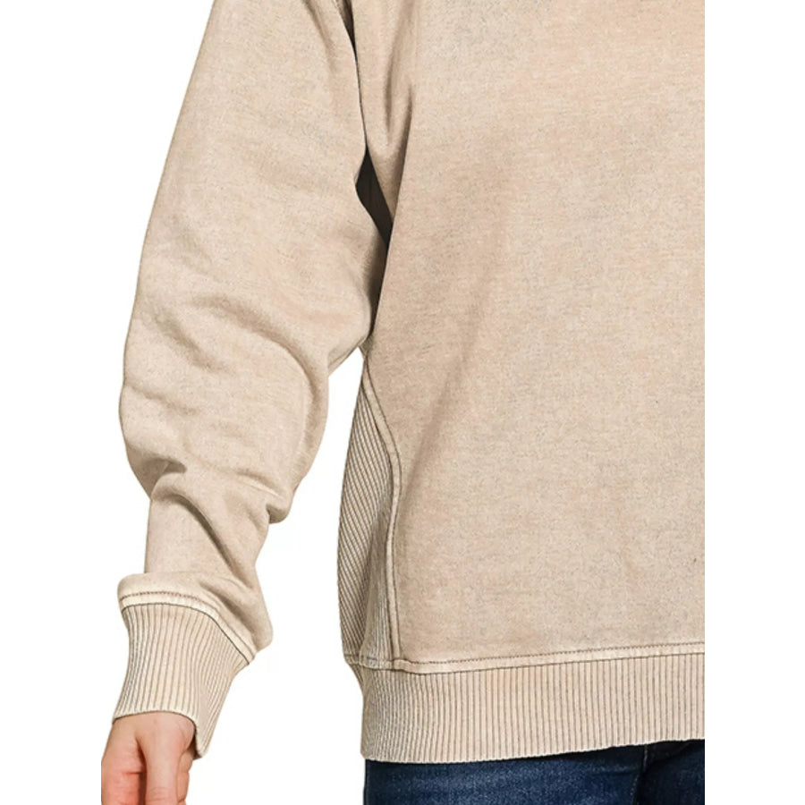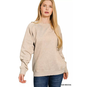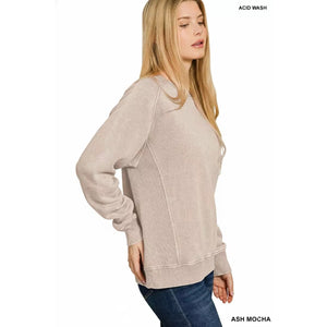 Zenana Acid Washed Fleece Sweatshirt with Side Rib