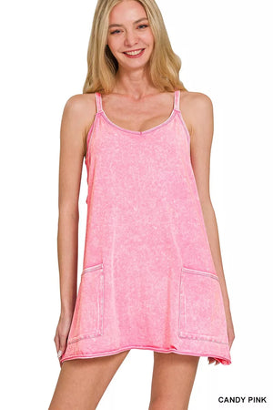 Zenana Acid Washed Mini Dress With Built-in Romper Liner