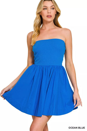 Zenana Combined Knit Tube Top Flare Mini Dress