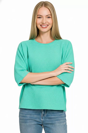 The Double Knit Short Sleeve Top is a versatile and chic addition to your wardrobe. Made from double knit fabric, this top offers both comfort and style. The short sleeves make it perfect for layering or wearing on its own in warmer weather. The classic design and solid color make it easy to pair with a variety of bottoms for different looks. Elevate your everyday style with the polished simplicity of the Double Knit Short Sleeve Top.