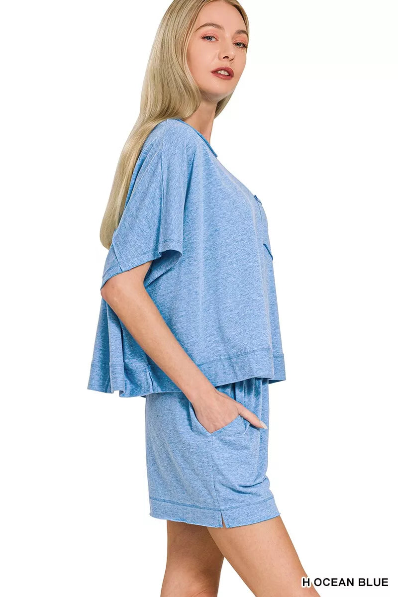 Zenana Exposed Seam Boxy Top & Shorts Set