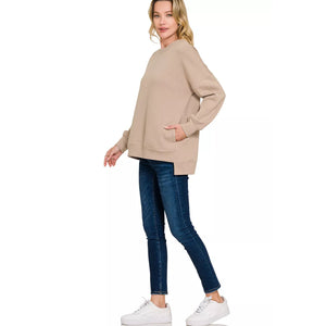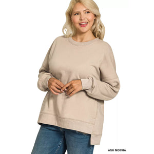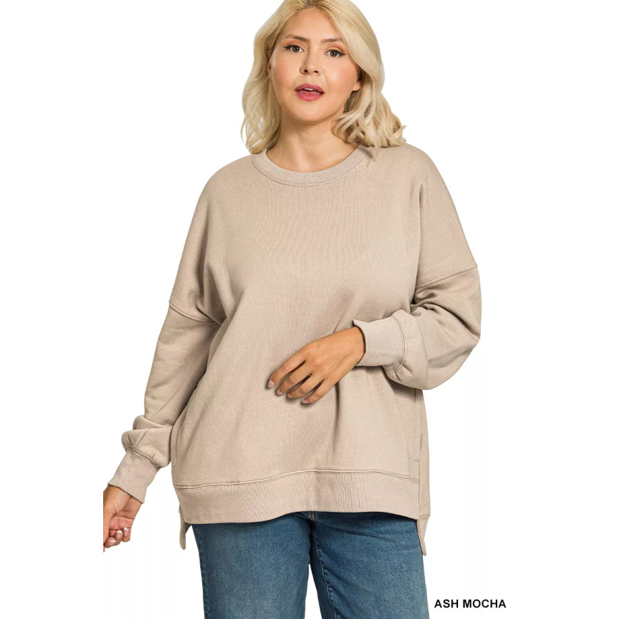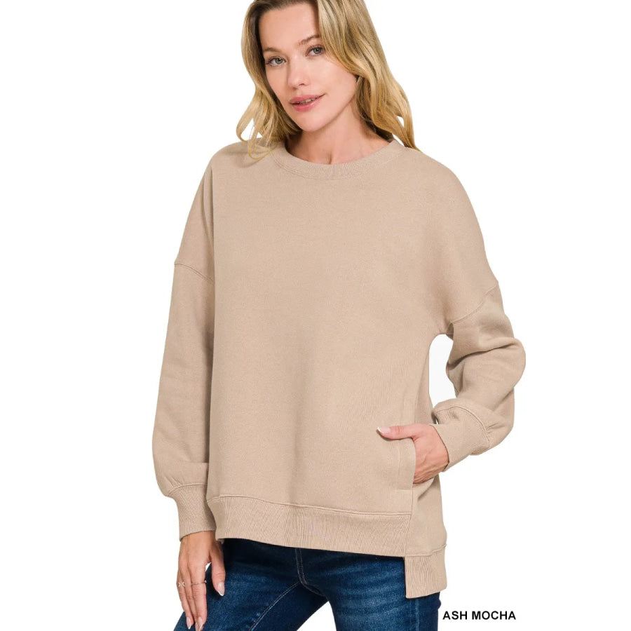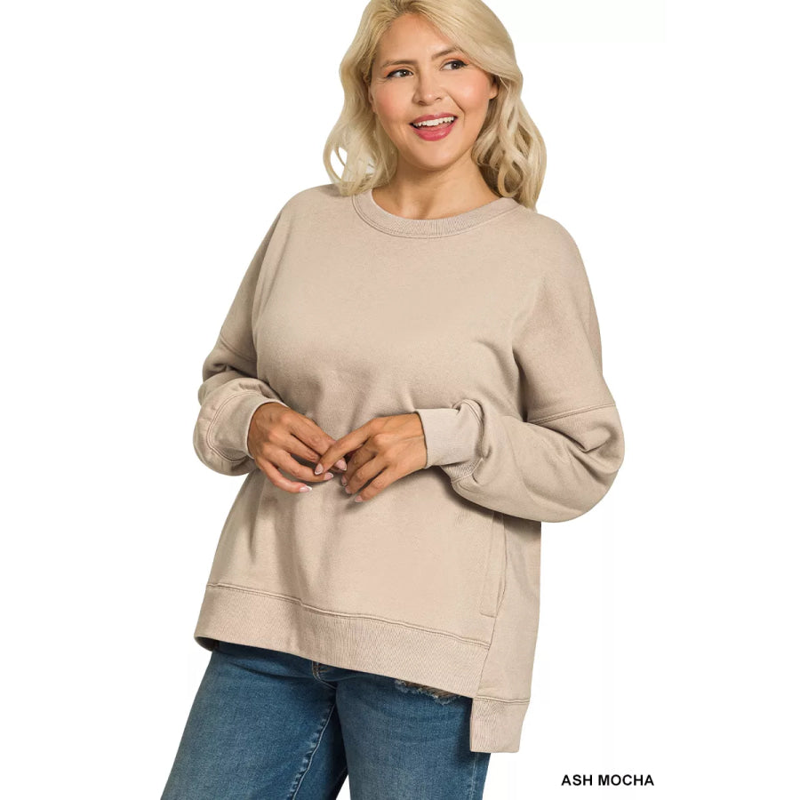 Zenana Full Size Fleece Hi-low Boyfriend Sweatshirts with Pockets Plus Size