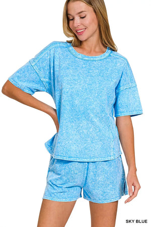 Zenana Halo Snow Washed Short Sleeve Tee and Shorts Set