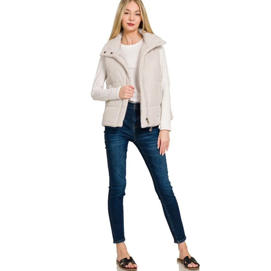 The High Neck Zip-Up Vest Coat is a versatile and stylish outerwear piece perfect for layering. With a high neck design, this coat provides extra warmth and coverage. The zip-up front closure offers convenience and adds a modern touch to the design. This vest coat is a practical choice for staying cozy during colder weather. Pair it with your favorite outfits for a trendy and functional look.
