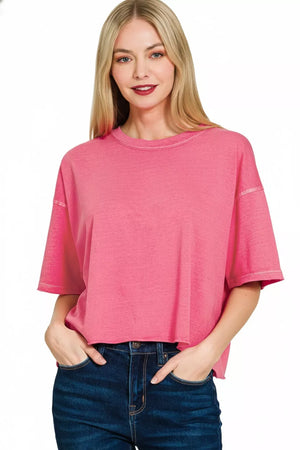 Zenana Pigment Dye & Enzyme Washed Oversized Crop Box Tee