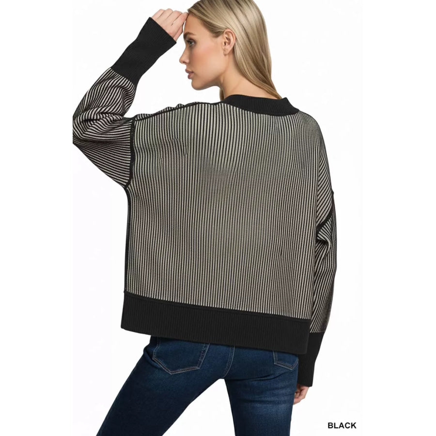 Zenana Ribbed Exposed Seam Two Tone Sweater