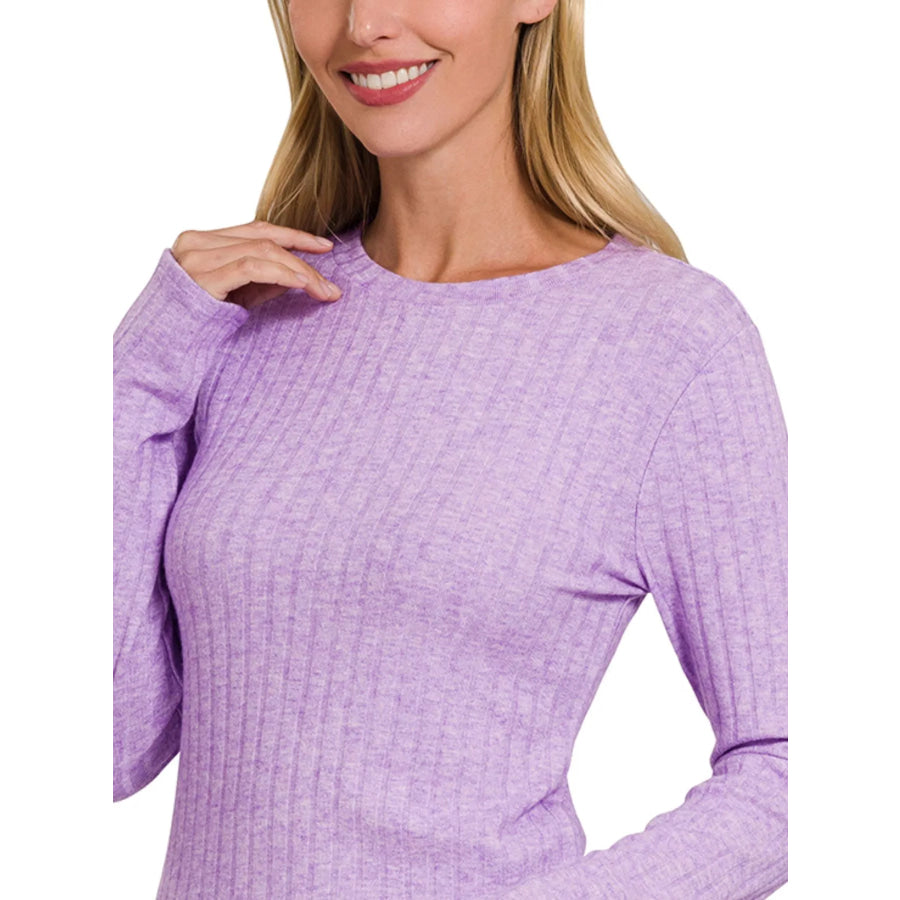 Zenana Ribbed Long Sleeve Round Neck T-Shirt