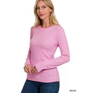 Zenana Ribbed Long Sleeve Round Neck T-Shirt